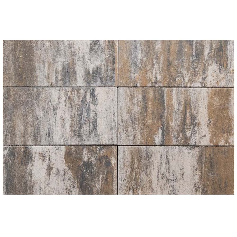 Крупноформатная тротуарная плитка “Мегаполис” имеет размер 600х300х80 мм и выполнена в цветовой гамме, имитирующей натуральный камень типа “Песчаник”. Имитация вкраплений кварца, песка и других минералов в верхнем слое плит придает изделиям особую естественность.